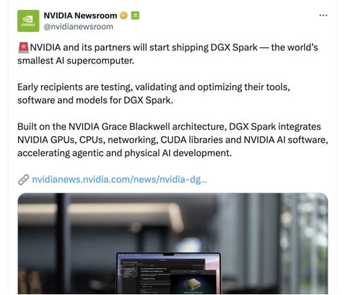 英伟达宣布,自10月15日起,DGX Spark将通过官方网站以及宏碁、华硕、戴尔、技嘉、惠普、联想、微星等合作厂商开放订购。此外,该系统也将在美国Micro Center零售店上架,并随后通过AI实验室分销网络推向全球市场。